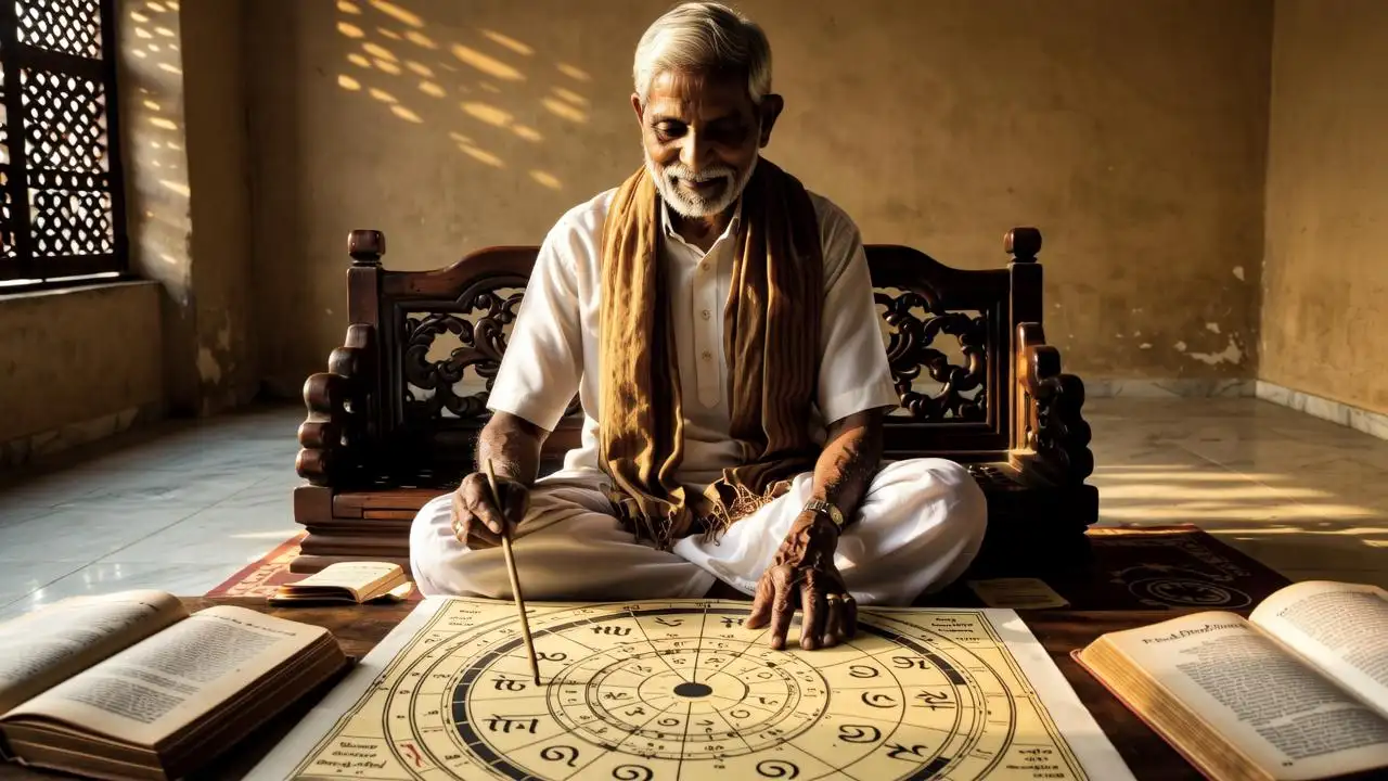 Jyotish, derived from the Sanskrit word "jyoti" meaning light, is one of the six Vedangas (limbs of the Vedas) and serves as the traditional system of astronomy and astrology in India. Rooted in the Rigveda and later elaborated in classical texts like the Brihat Parashara Hora Shastra, it functions as both a predictive science and a spiritual discipline aimed at aligning individual actions with cosmic order. Central to its philosophy is the belief that planetary positions at birth reflect karmic imprints from past lives, influencing present circumstances and future potential.